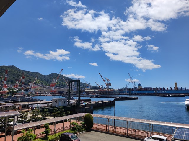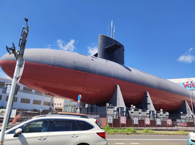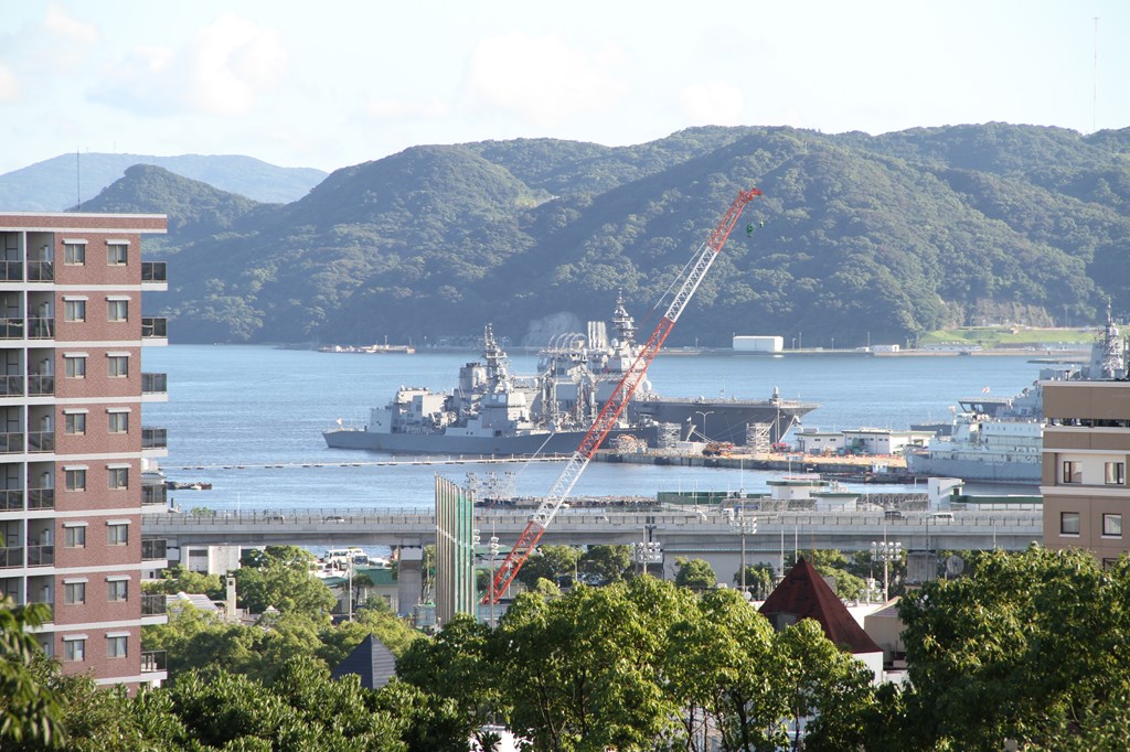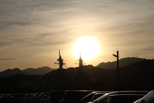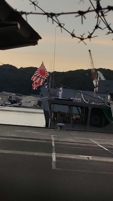自衛隊の基地の方まで来ると、ちょうど自衛艦旗を降納していました