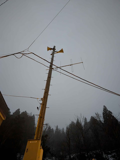 なんと、途中に防災無線があり、ちょうど12時数分前だったので立ち寄り。
